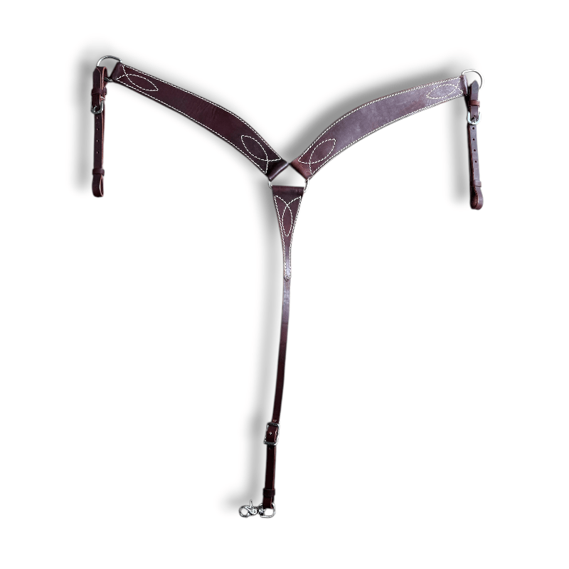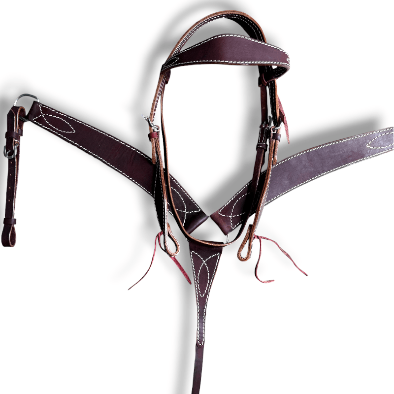 Ogłowie i napierśnik Red Canyon to solidnie wykonany zestaw western obejmujący ogłowie oraz napierśnik w ciemnym odcieniu. Ogłowie wyróżnia się starannym wykonaniem ze skóry naturalnej oraz pasującym napierśnikiem, który dodaje całości klasycznego kowbojskiego charakteru.